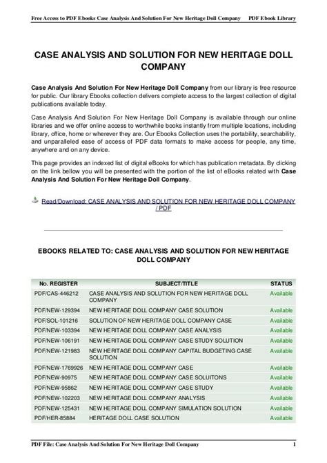 Online PDF NEW HERITAGE DOLL COMPANY CASE STUDY SOLUTION Library Binding ManyBooks